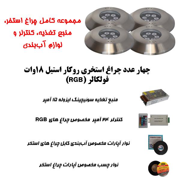 پک کامل چراغ روکار استخری استیل برای استخرهای تا 35 متر مربع ( تا ابعاد 8 متر در 4.5 متر )